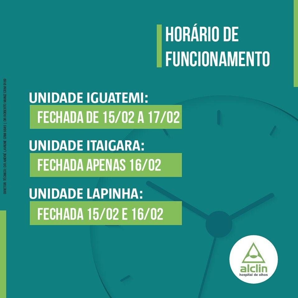 Confira horário de funcionamento das unidades Alclin no período do Carnaval….