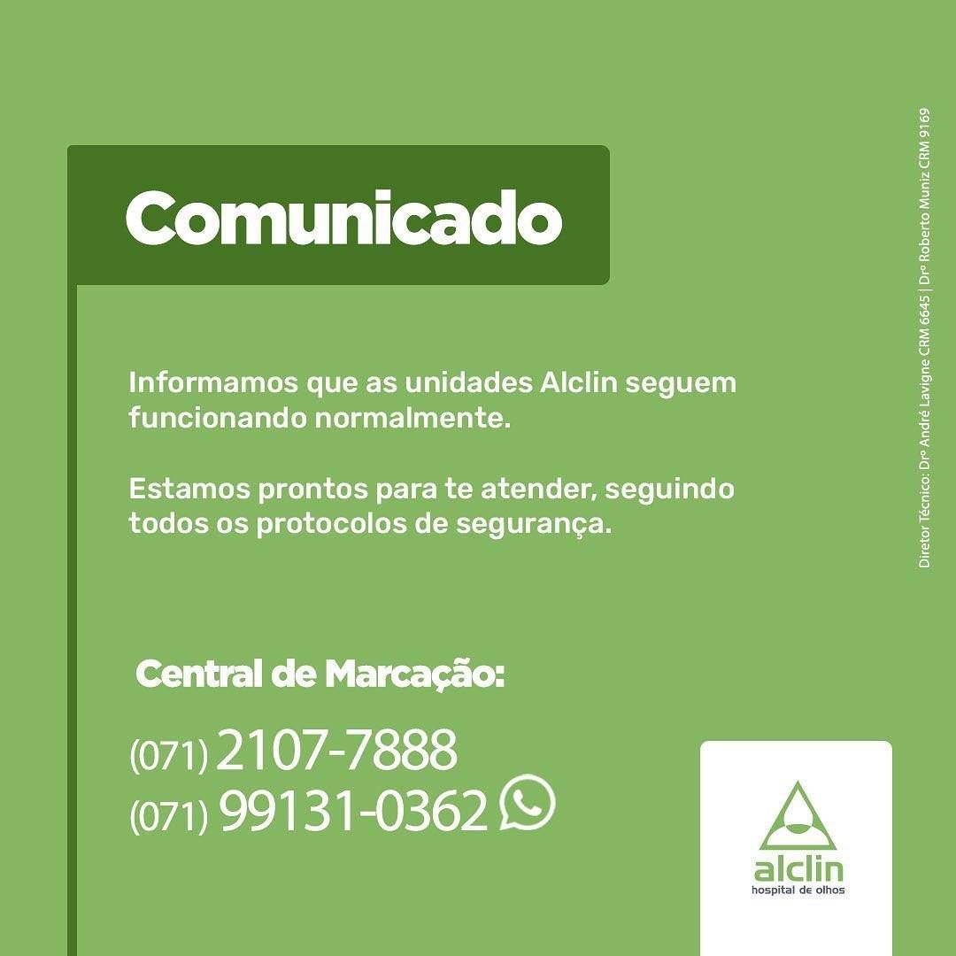 Informamos que as unidades Alclin seguem funcionando normalmente. Estamos prontos para te atender, seguindo todos os protocolos de segurança. #?Central de Atendimento: (71) 2107-7888 #?WhatsApp: (71) 99131-0362 #Alclin #AlclinHospitalDeOlhos #HospitalDeOlhos #Olho #Olhos #Visão #SaúdeOcular